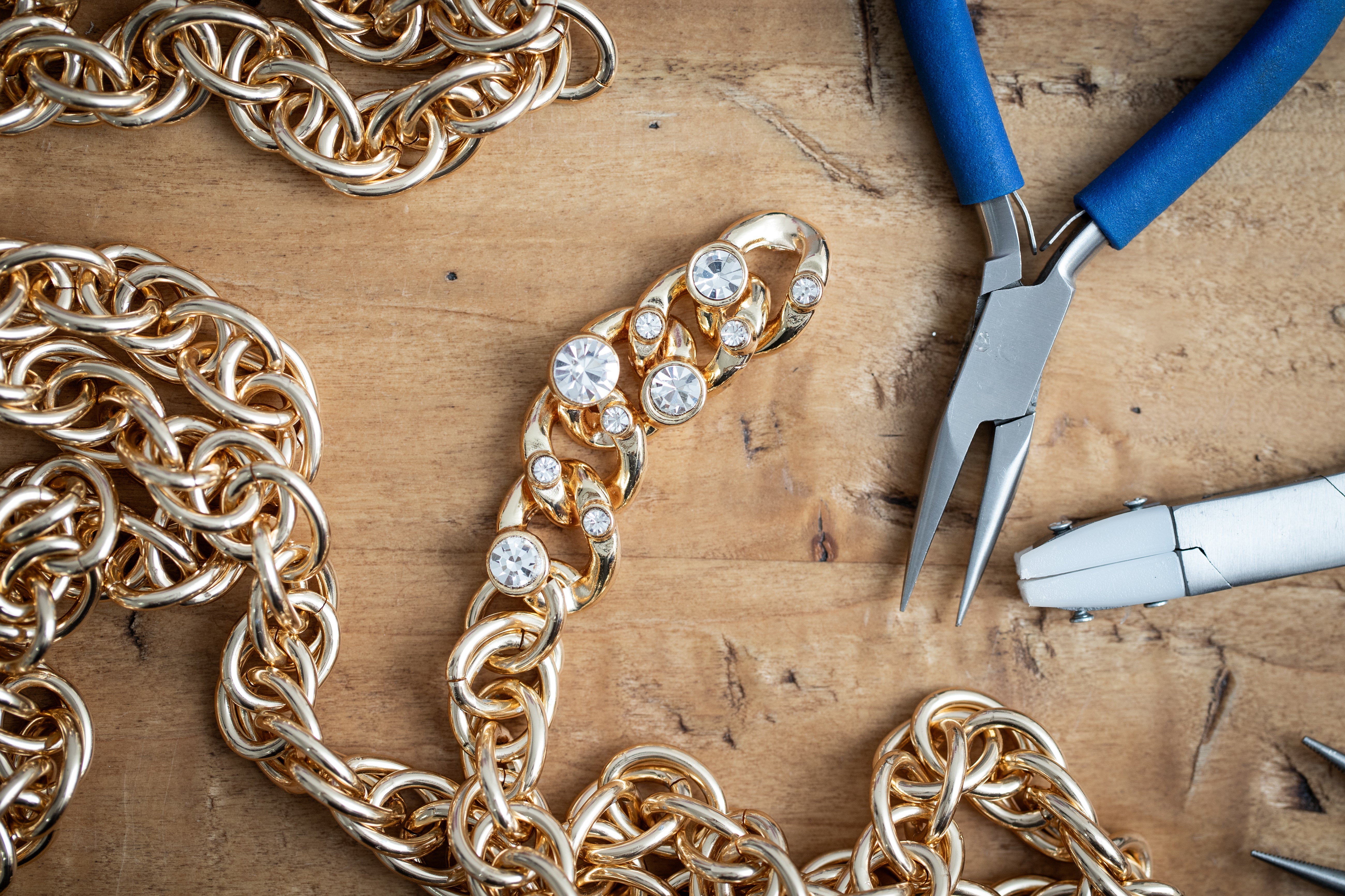 I gioielli nascono dalla combinazione fra base metallica e dettagli in materiali scelti: pietre dure, pelle, cristalli, piume.